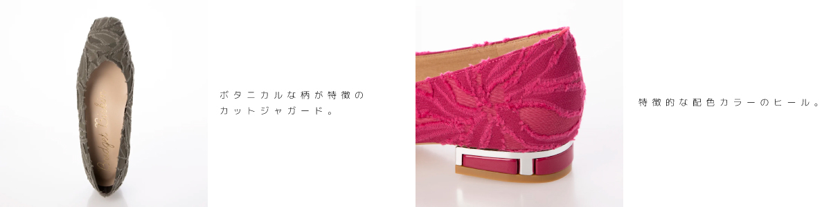 トップライン(履き口)をVカットにすることでエレガンスかつ足元をきれいに見せてくれます。